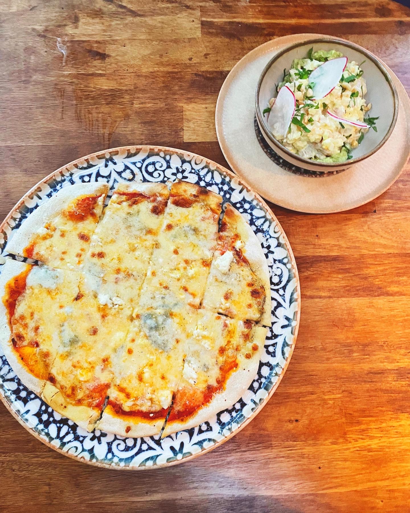 • Plato Fuerte: Pizza Cuatro Quesos – Queso mozzarella, gorgonzola, feta y parmesano 8.5/10